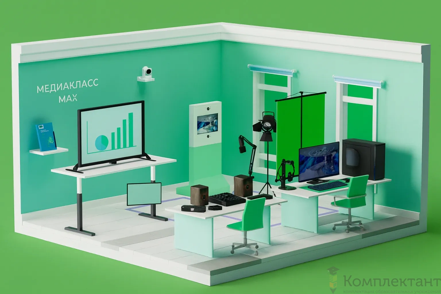 Школьный медиакласс — это комплекс мультимедийного оборудования для организации школьной телестудии и фотостудии. Он сочетает в себе всё необходимое для фото- и видеосъёмки, трансляций, звукозаписи, подкастинга и постпродакшна. Подходит для школьных проектов, внеклассной деятельности и предпрофессионального образования.