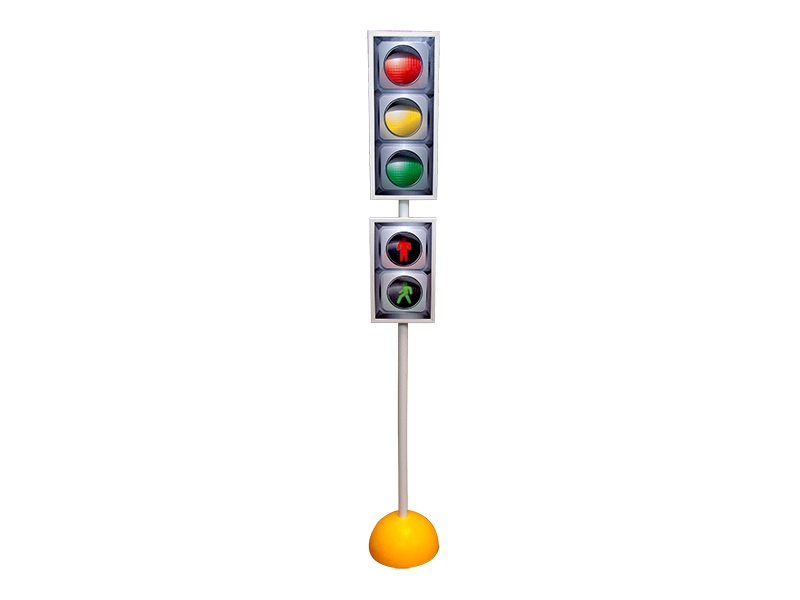 Модель представляет собой конструкцию из светофорной секции (транспортного и пешеходного светофоров), на которую крепятся магнитные элементы в виде светофорных сигналов, стойки и основания.