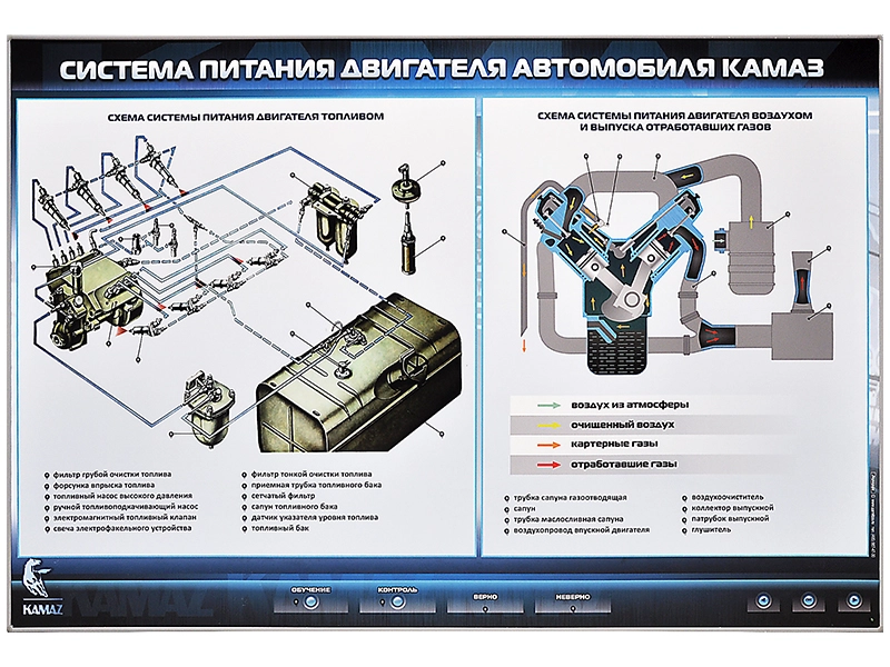 Интерактивный стенд предназначен для наглядного изучения системы питания двигателя автомобиля КамАЗ.