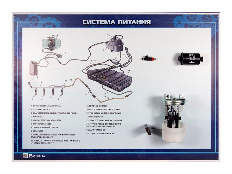 Стенд-планшет с комплектом деталей системы питания бензинового двигателя марки "ВАЗ"