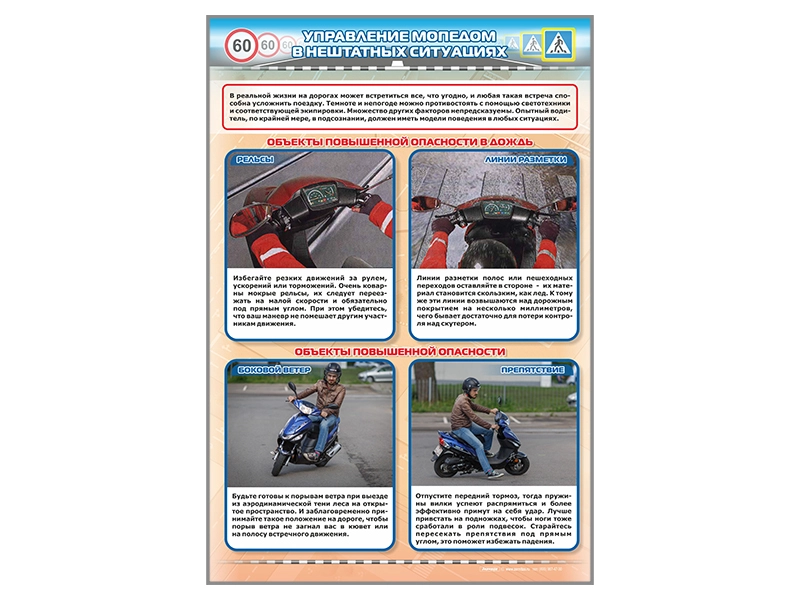 Стенд представляет собой информационную панель, на которой размещены сведения об управлении мопедом в нештатных ситуациях.