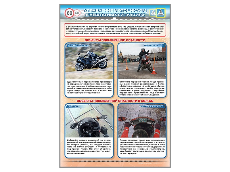 Стенд представляет собой информационную панель, на которой размещены сведения об управлении мотоциклом в нештатных ситуациях.