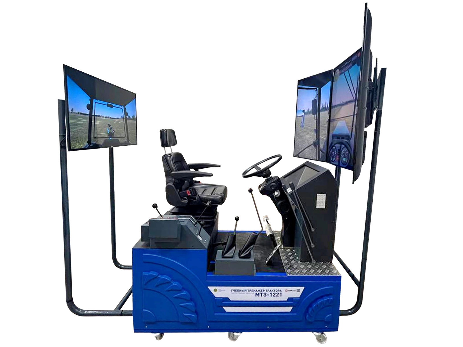 Тренажер предназначен для обучения вождению кандидатов в операторы сельскохозяйственных машин, обеспечивает максимальное приближение к условиям работы водителя реального трактора с навесным. Помогает выработать базовые физические навыки работы с органами управления сельскохозяйственного трактора: правильная работа рулем, педалями и рычагами управления, правильное руление, маневрирование с навесным сельскохозяйственным оборудованием, пользование контрольно-измерительными приборами и бортовым пультом управления трактора МТЗ-1221.