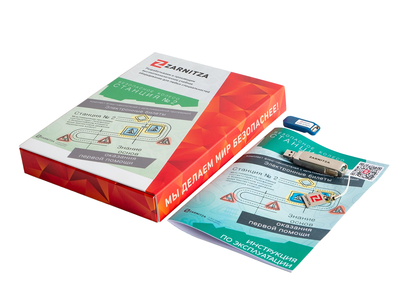 - Флеш-накопитель с мультимедийной программой "Экзаменационные билеты: станция № 2 "Знание основ оказания первой помощи" - 1 шт.