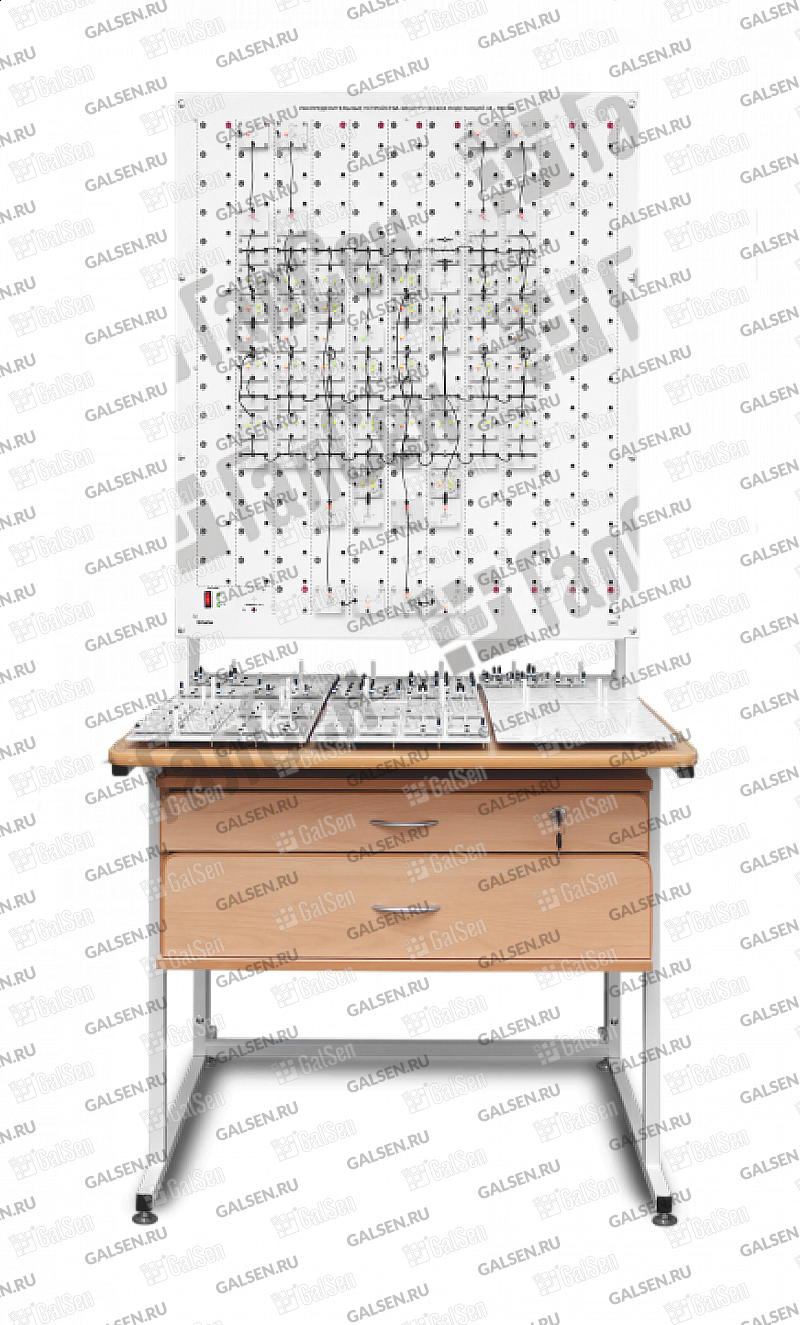 - Технология гибкой модульной сборки — легкая компоновка цепей из сменных блоков ГалСен® по интуитивно понятному принципу конструктора; перекрёстное использование модулей в разных стендах одной или нескольких ваших учебных лабораторий; повышенная отказоустойчивость стенда в целом и оперативный ремонт/замена.