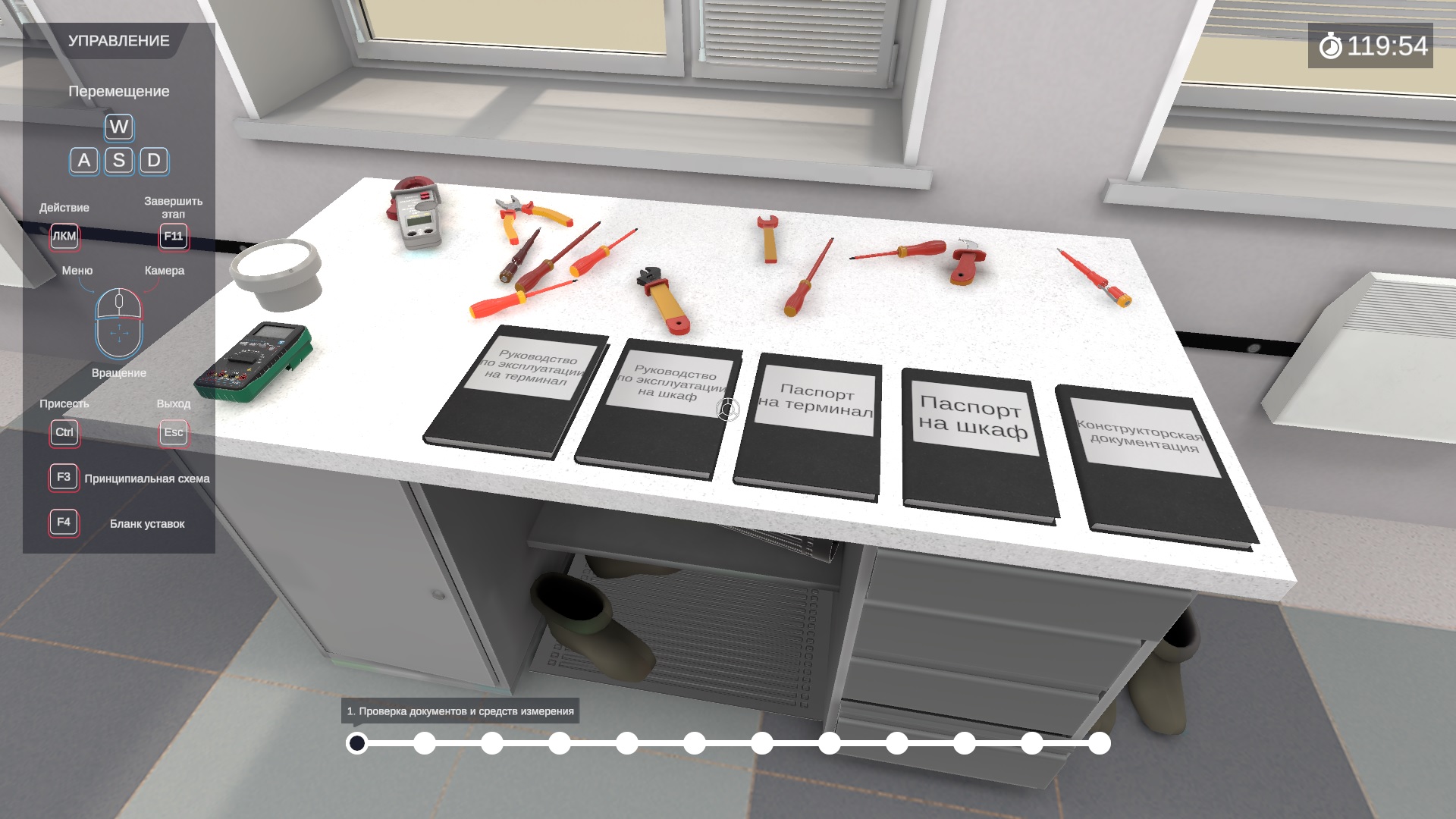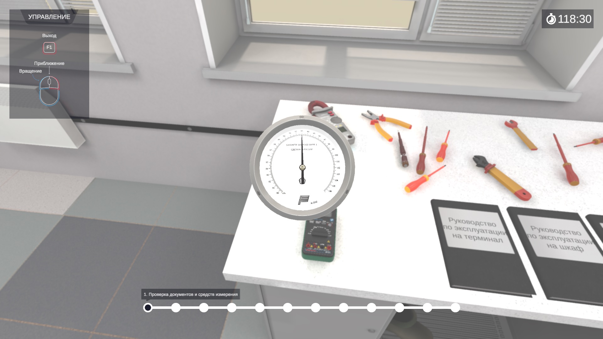 В режиме экзамена пользователь выполняет все необходимые действия самостоятельно, без подсказок.