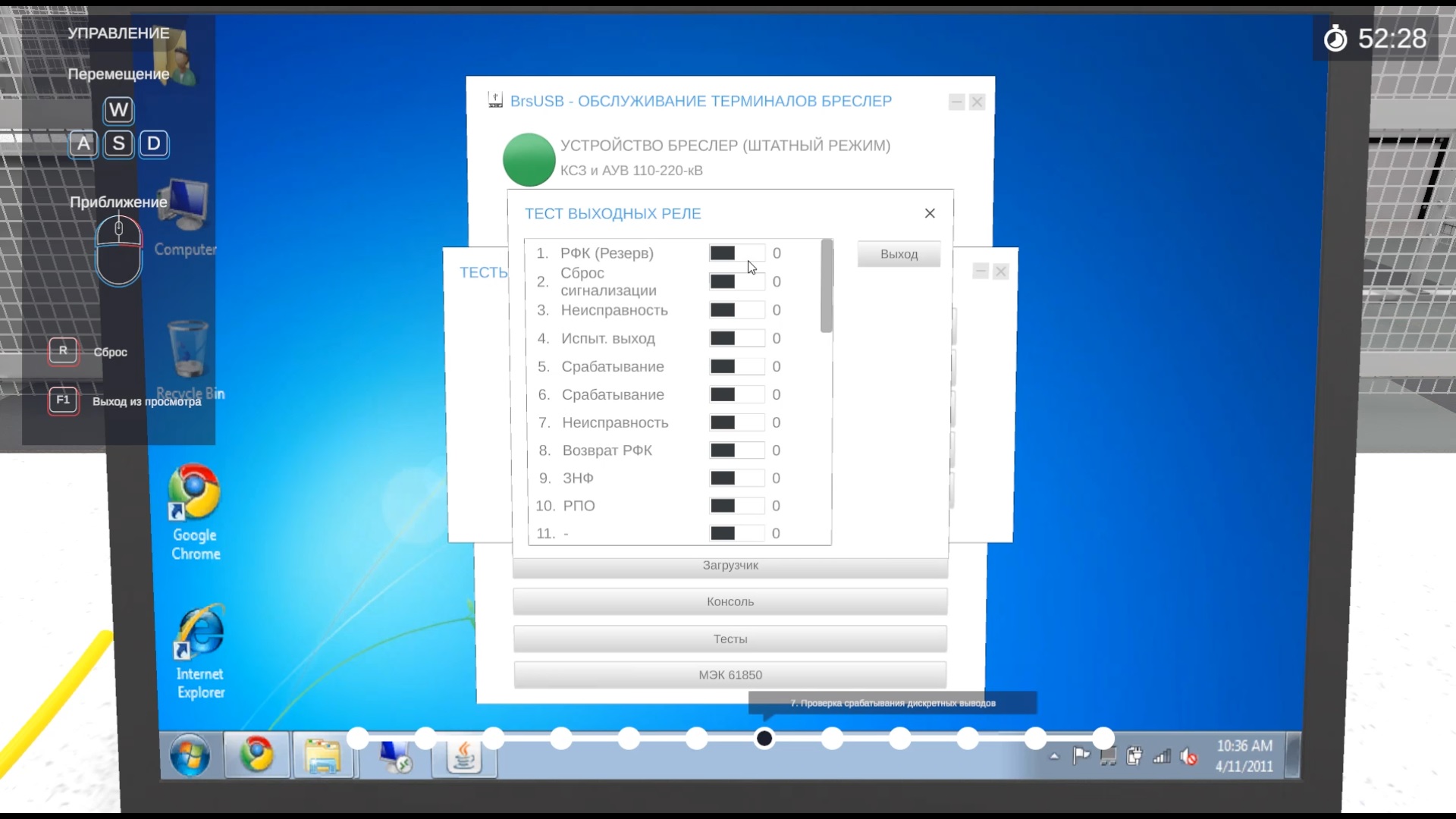 Этап 11. Проверка управляющих функций РЗА с воздействием выходных реле терминала в цепи управления коммутационными аппаратами