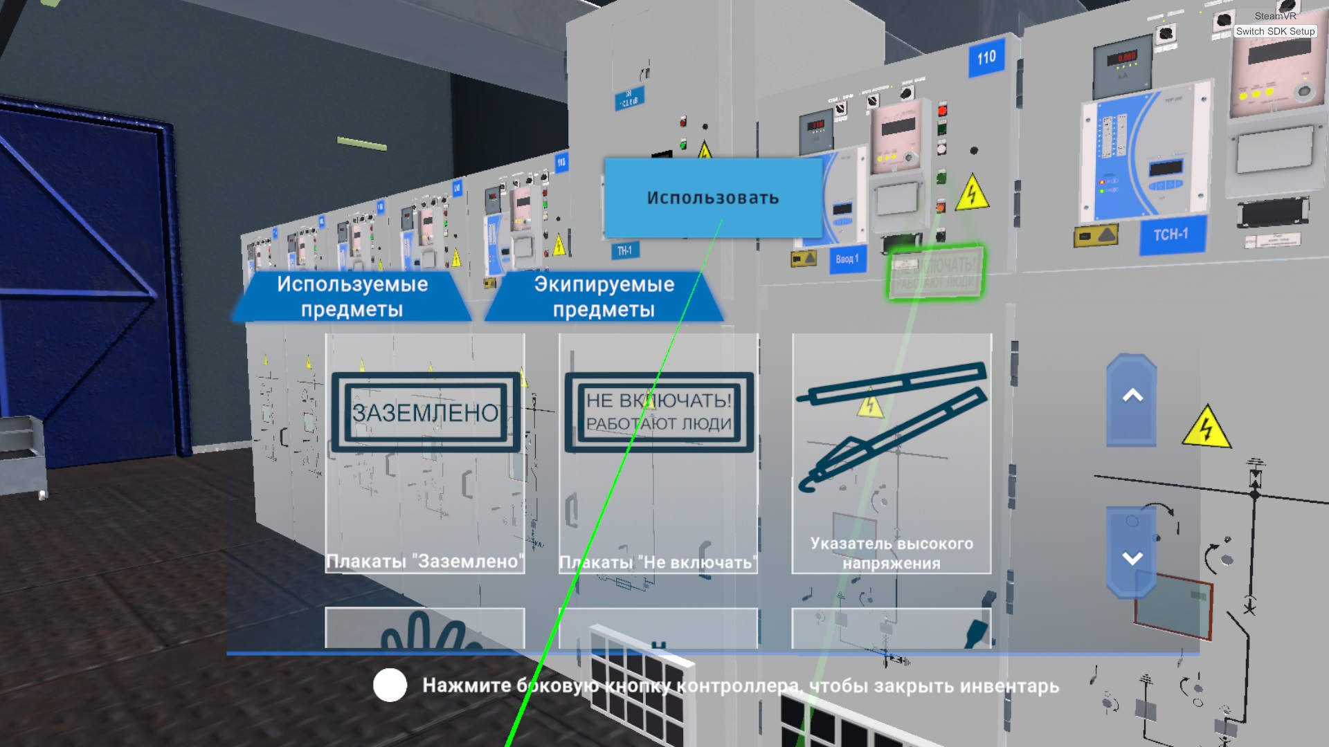 В режиме обучения пользователь знакомится с пошаговыми инструкциями по выполнению работ, электрическими схемами и т.д. В данном режиме активны: цветовые и текстовые подсказки, бланк переключений, однолинейная схема, добавлена возможность допустить критическую ошибку.