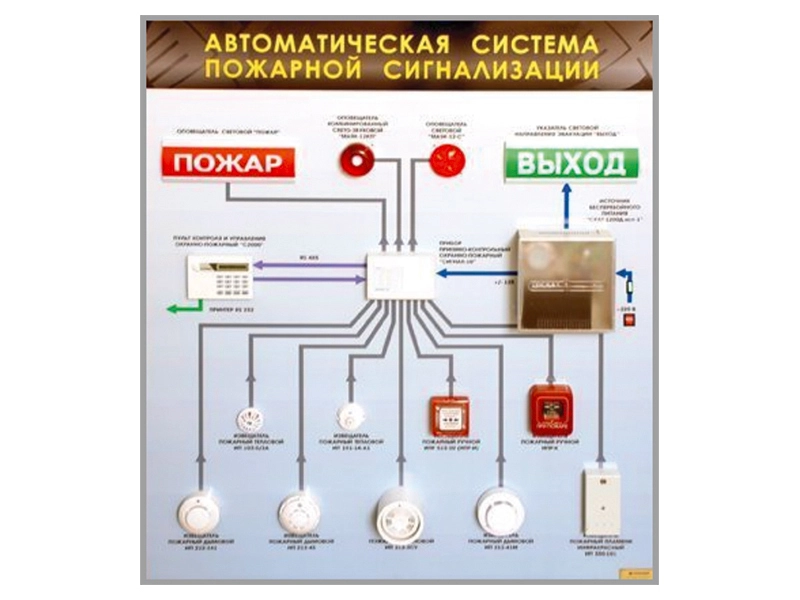 Электрифицированный стенд предназначен для изучения и наглядной демонстрации структурной схемы и принципов действия автоматических систем пожарной сигнализации, основных узлов, приборов и устройств для систем подобного типа.