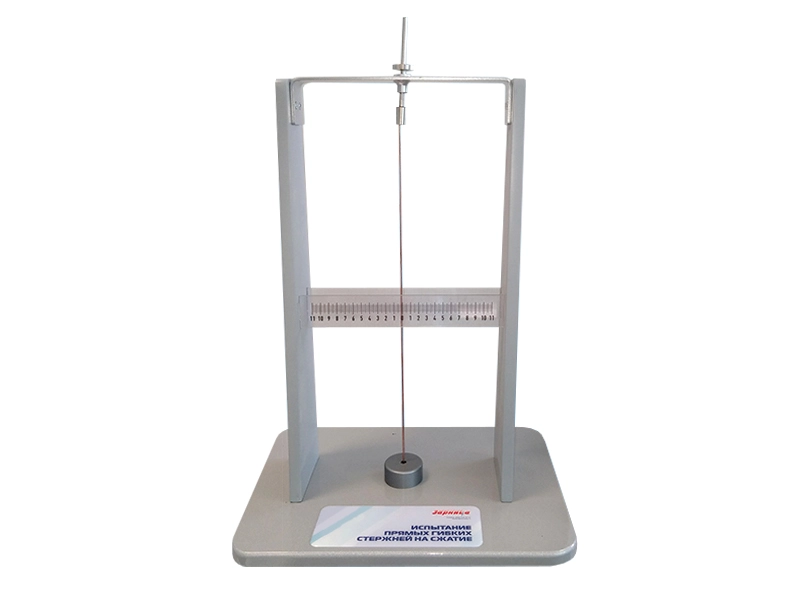 Лабораторная установка "Испытание прямых гибких стержней на сжатие" предназначена для наглядной демонстрации явления потери устойчивости при сжатии прямолинейного изучаемого образца при прохождении обучения по курсам "Прикладная механика" и "Сопротивление материалов".