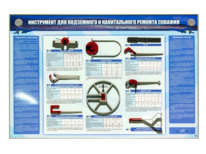 Электрифицированный стенд предназначен для приобретения и закрепления учащимися специализированных учреждений базовых знаний об инструменте, используемом для подземного и капитального ремонта скважины.