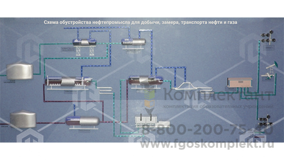 Макет "Схема обустройства нефтепромысла для добычи, замера, транспорта нефти и газа