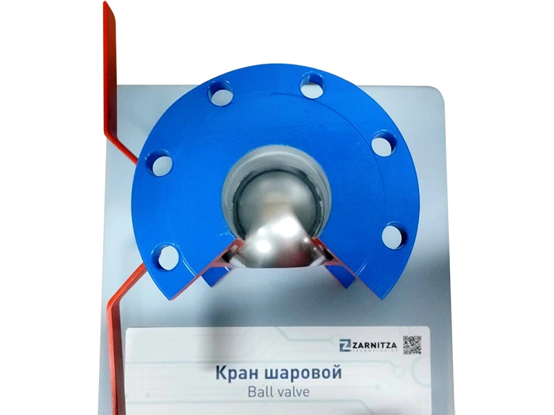 Учебное оборудование представляет собой модель крана шарового с выполненным разрезом.