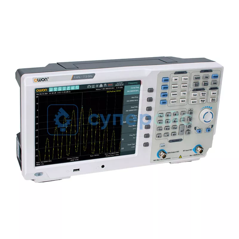 - Гарантирует точное измерение спектра в частотном диапазоне от 9 кГц до 7.5 ГГц, что делает его выбором для работы с различными сигналами.