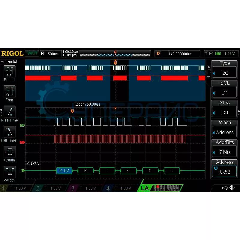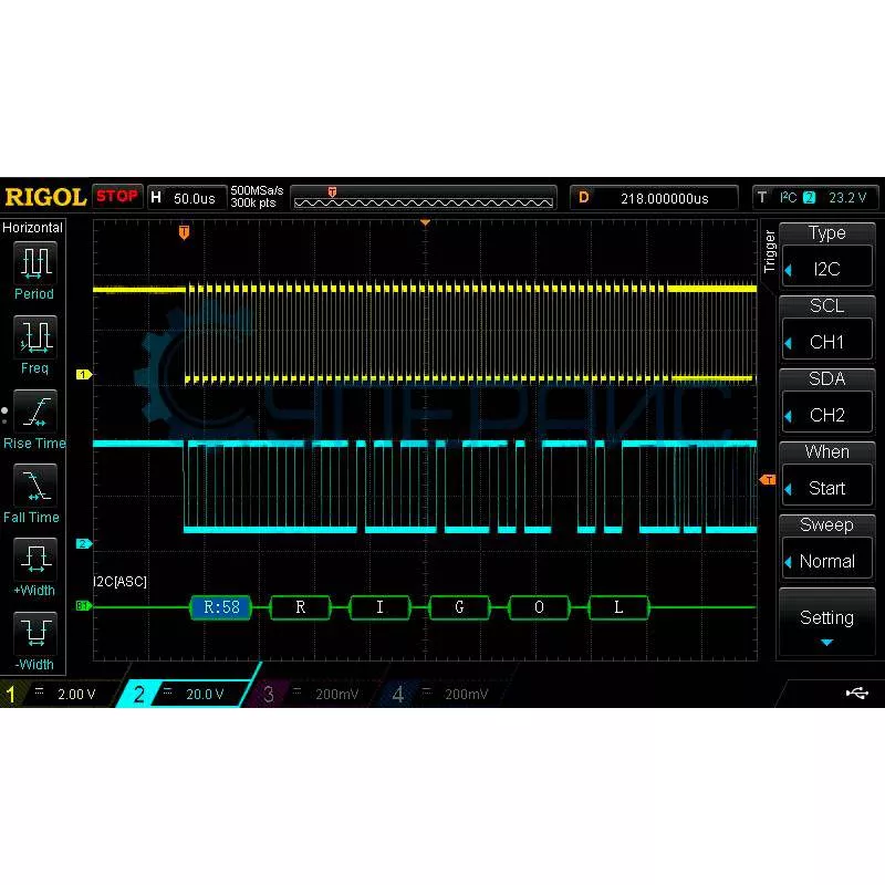 Режимы триггера | фронт, импульс, видео (NTSC,PAL,SECAM), Slope, рант, окно, шаблон, N фронт, истечение времени, длительность события, установка/удержание, RS232/UART, I2C, SPI |