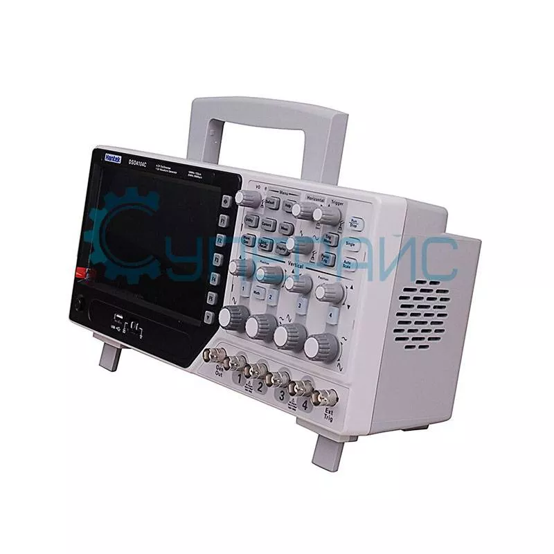 Hantek DSO4104C — это цифровой осциллограф, 4 канала в конструкции которого предназначены для одновременного исследования нескольких электрических сигналов. Это настольная модель с полосой пропускания 100 МГц. Многоканальность обуславливает удобство при сравнительном анализе.