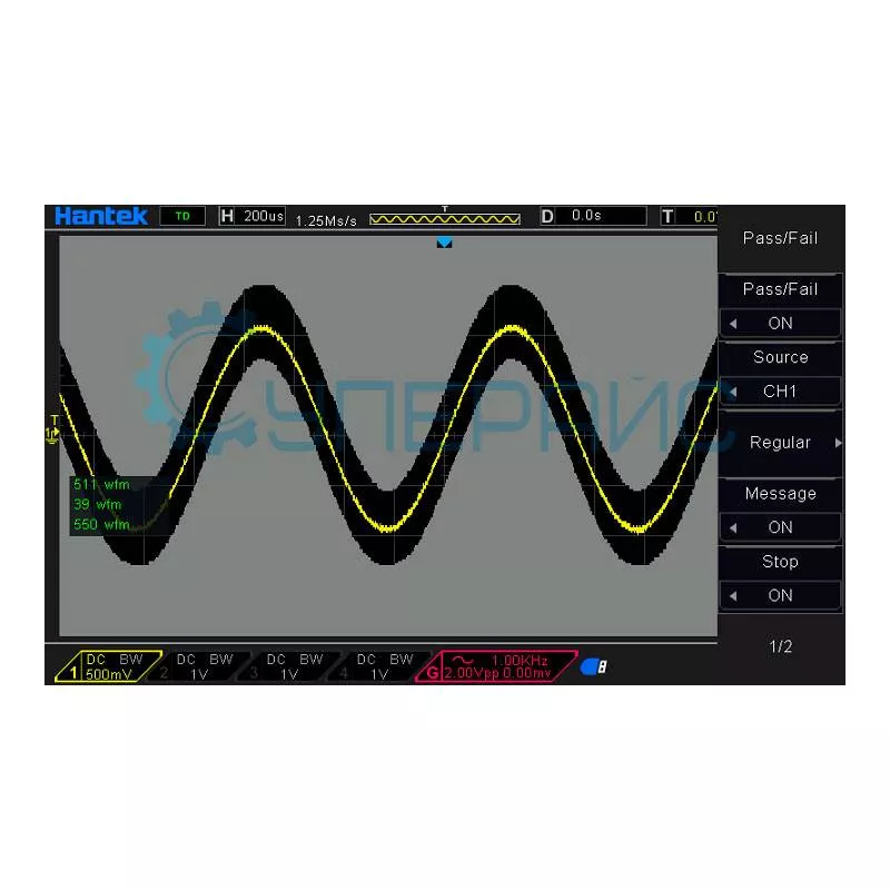 Представленный осциллограф hantek оборудован цветным экраном, который установлен на передней панели. Дисплей на базе технологии TFT с разрешением 800 на 480 точек даёт четкое изображение сигналов. Подсветка LCD помогает различать мельчайшие детали формы волны при слабом освещении.