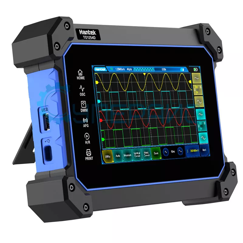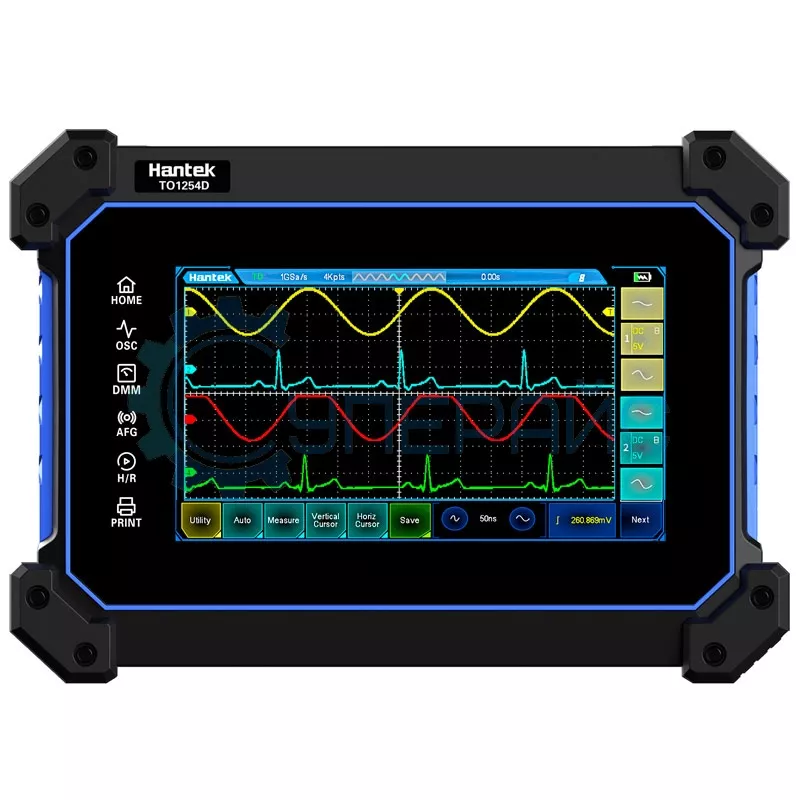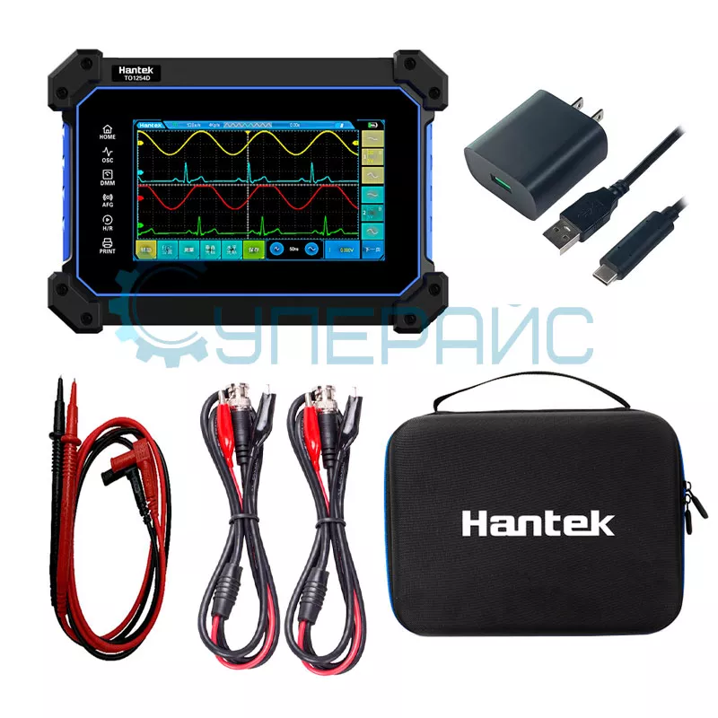 Hantek TO1254D – это четырёхканальный осциллограф со встроенным генератором сигналов и мультиметром, поддерживающий большой набор функций. Модель имеет 4 канала, что даёт возможность подключать два и более устройств для проведения комплексных испытаний.