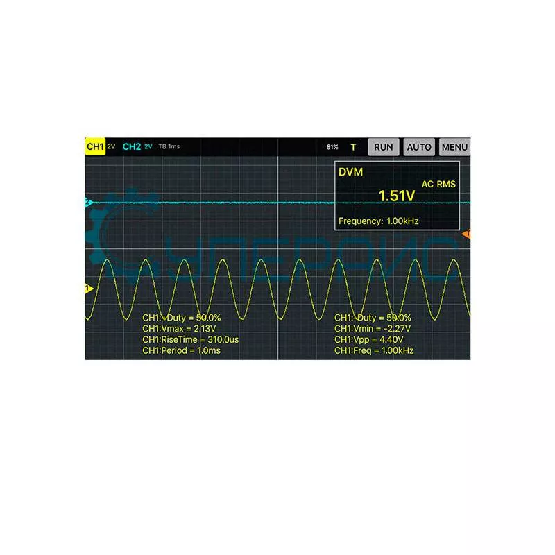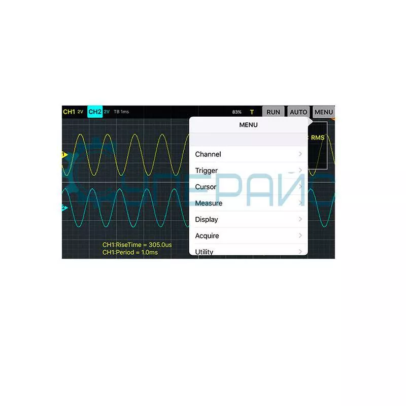 Программные возможности | данные формы волны могут быть выведены в EXCEL, BMP, JPG по времени и напряжению возможность подключения к iPad и iPhone одновременно, изменения будут отображаться на двух устройствах одновременно | ||