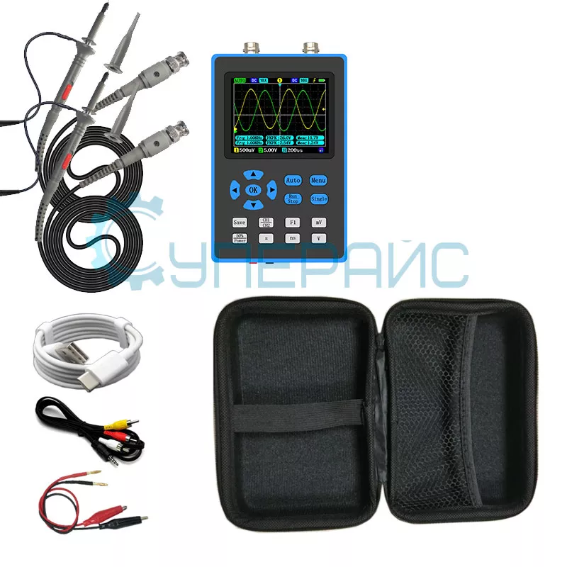 • Простота подключения — комплектация включает осциллографические щупы, кабели «крокодил» и переходники.