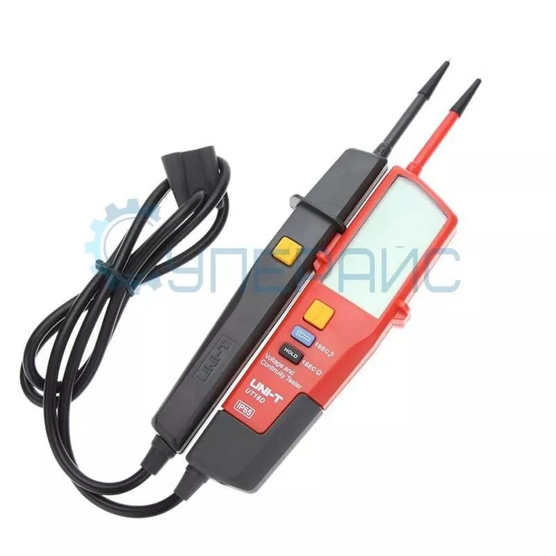 UNI-T UT18D — высококачественный тестер напряжения промышленного класса, оснащенный функцией измерения напряжения, частоты, последовательности фаз для трехфазной системы переменного тока, тестирования автоматов УЗО, самопроверки, прозвонки цепи, тестирования напряжения одним щупом. Прибор работает как с постоянным, так и с переменным напряжением. Результаты измерений выводятся на ЖК-дисплей с подсветкой, что позволяет производить измерения при плохом освещении или в темное время суток. Для включения подсветки на ЖК индикаторе следует нажать и удерживать в течение 1 секунды кнопку HOLD. Для удобства считывания результаты замеров (напряжение и частота) можно задержать, кратко нажав кнопку HOLD на приборе после измерения. В процессе работы, тестер напряжения UT18D автоматически определяет и подбирает необходимые настройки: вы можете сразу приступать к измерению без всяких включений и переключений. Прибор имеет возможность работы с трехфазными цепями и позволяет производить простые измерения в случае севшей батареи или ее отсутствия. Индикатор напряжения удобно лежит в руке, прост в применении, допускает работу в перчатках и обеспечивает быструю и надежную фиксацию щупов.