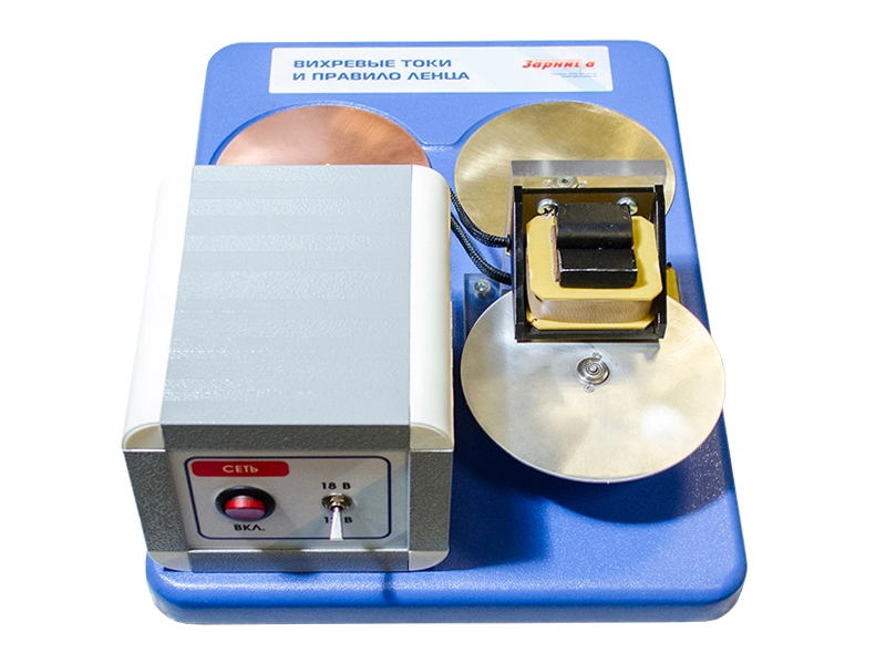 Макет действующий "Вихревые токи и правило Ленца" предназначен для демонстрации взаимодействия индукционного тока, возникающего во внешнем проводнике с током в катушке, и направлен на ознакомление с основами и сущностью физических процессов и явлений, происходящих в электрических цепях.