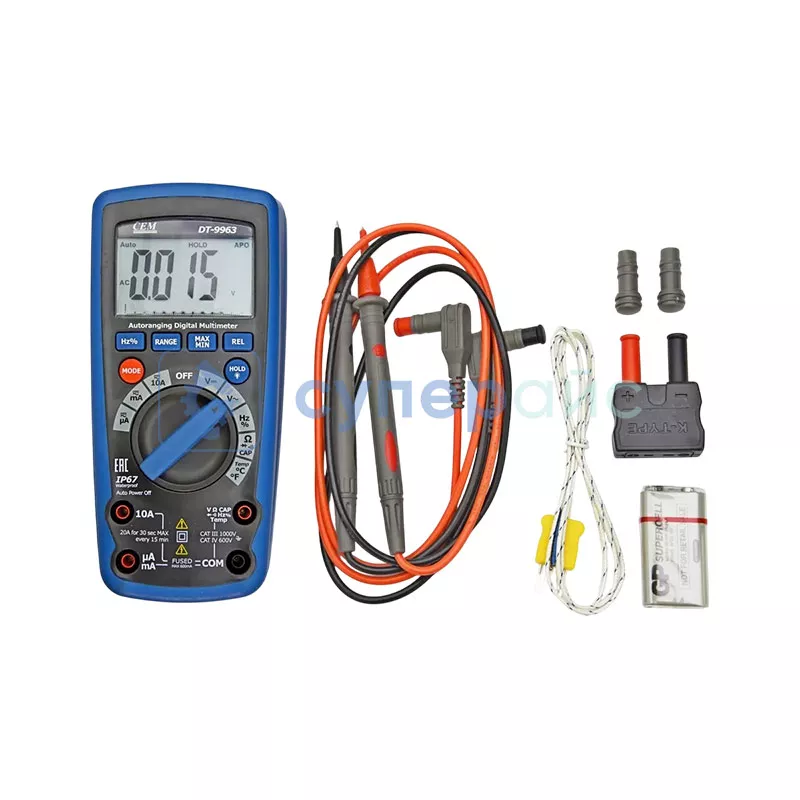 Комплектация | мультиметр CEM DT-9963 - 1 шт щуп - 2 шт батарея 9 В - 1 шт датчик термопара типа К - 1 шт руководство пользователя - 1 шт |