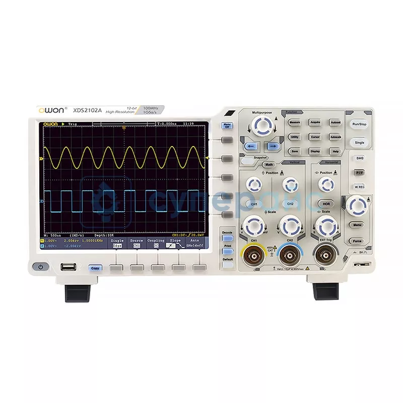 Автоматическое измерение | Vpp, Vavg, Vrms, Freq, Period, Week RMS, Cursor RMS, Vmax, Vmin, Vtop, Vbase, Vamp, Overshoot, Phase, Preshoot, Rise Time, Fall Time,+Width, -Width, +Duty, -Duty, Duty Cycle, Delay A→B ↑, Delay A→B↓, +Pulse Count, -Pulse Count, Rise Edge Count, Fall Edge Count |