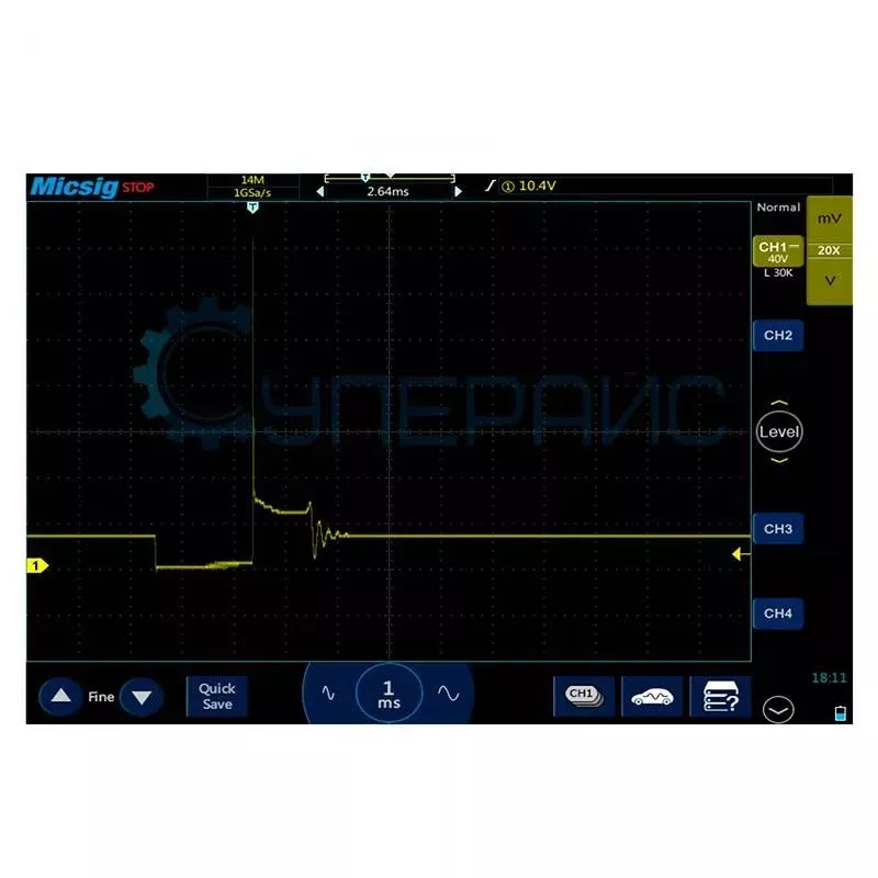 В Micsig ATO1104 Plus имеются такие режимы перехватов как: автоматический, одиночный и нормальный. Автоматический используется для анализа аналоговых периодических сигналов, одиночный режим для непериодических сигналов, нормальный - непериодических цифровых сигналов.
