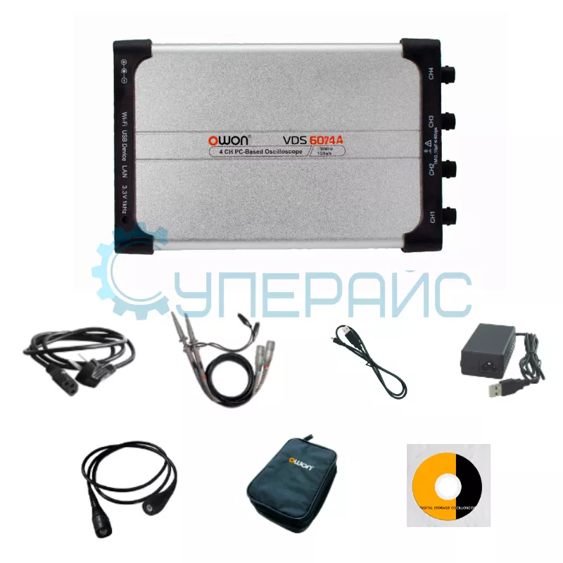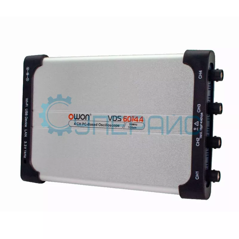 Если нужно произвести точные измерения, диагностику и поиск неисправностей в электронных устройствах, осциллограф USB-приставка OWON VDS6074A станет надёжным помощником. Это компактный и лёгкий прибор, который легко подключается к ПК или мобильным устройствам через порт USB. Приставка оснащена всеми необходимыми функциями, чтобы точно измерять параметры сигналов по четырём независимым каналам.