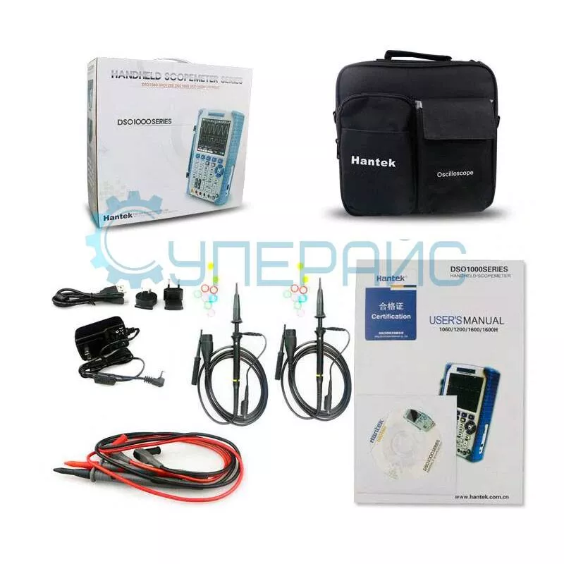 щупы для осциллографа - 2 шт щупы для ЦММ - 2 шт блок питания - 1 шт USB кабель - 1 шт диск с программным обеспечением - 1 шт инструкция по эксплуатации - 1 шт сумка - 1 шт |