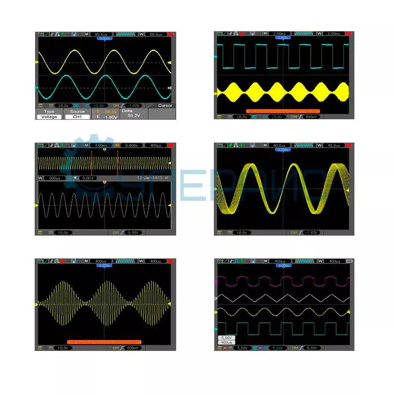 Автоматическое измерение | Частота, Период, Среднее, Пиковое значение, Среднеквадратичное значение цикла, Минимум, Максимум, Время нарастания, Время спада, Положительный импульс, Отрицательный импульс, Vbase, Vtop, Vmid , Vamp, Overshoot, Preshoot, Период, Среднее значение периода, RMS Период, FOVShoot, RPREShoot, Burst Width, FRF, FFR, LRR, LRF, LFR, LFF |