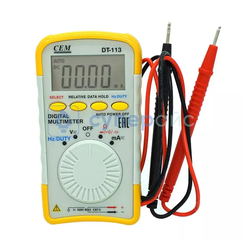Комплектация | мультиметр CEM DT-113 - 1 шт щуп - 2 шт батарейка CR2032 - 1 шт руководство пользователя - 1 шт |