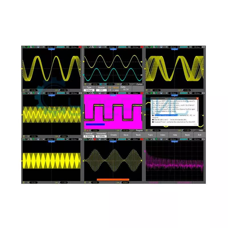 С помощью переключателя развязки входа можно выбирать между DC, AC и GND. DSO8202E способен измерять временной интервал с высокой точностью и располагает малой погрешностью временной базы, что делает его точным решением для проведения измерений с получением достоверных результатов. Среди режимов захвата доступны детектор пика, усреднение, а также режим реального времени.