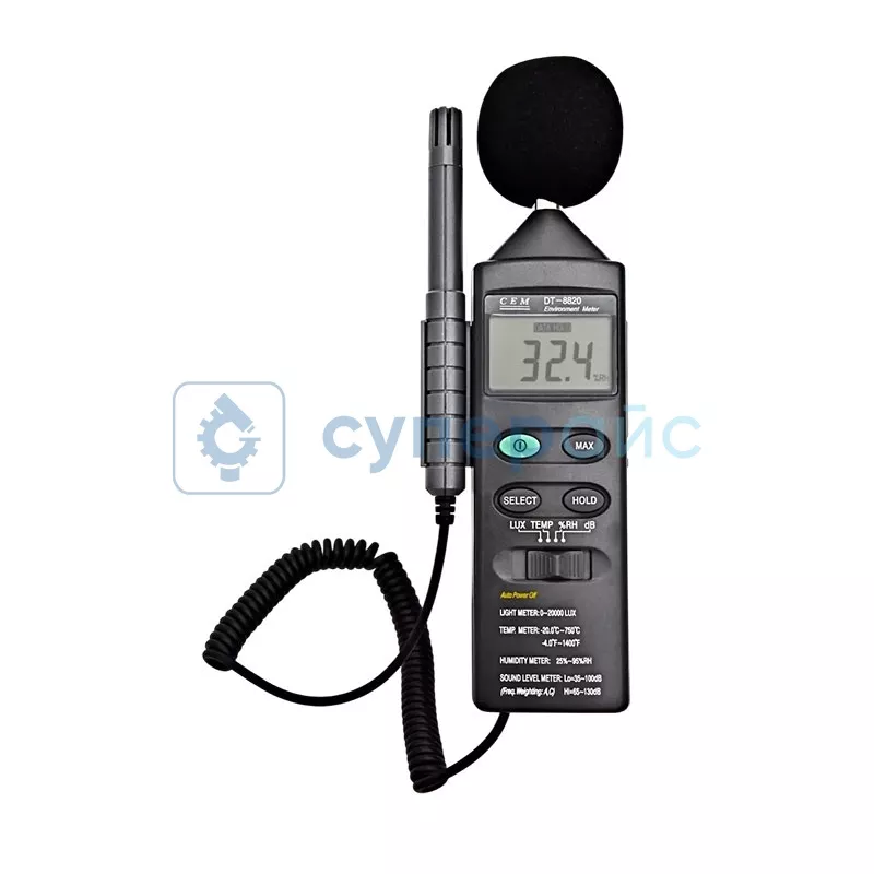 Комплектация | многофункциональны измеритель CEM DT-8820 – 1 шт батарея типа "Крона" – 1 шт термопара типа К – 1 шт датчик влажности – 1 шт датчик освещенности – 1 шт микрофон шумомера – 1 шт руководство пользователя – 1 шт |