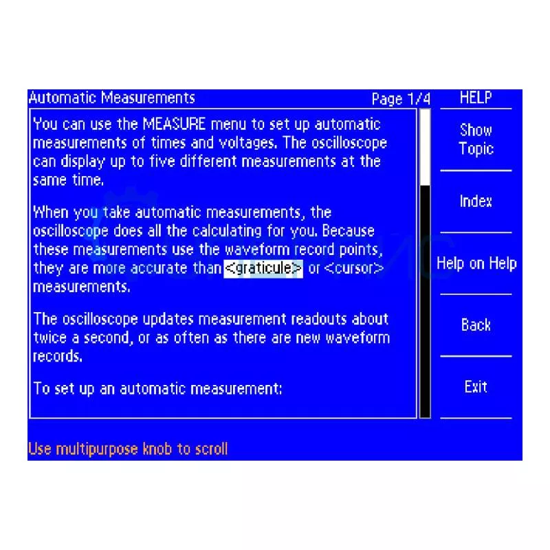 Автоматическое измерение | Период, частота, длительность положительного импульса, длительность отрицательного импульса, длительность фронта, длительность спада, максимум, минимум, двойной размах, среднее значение, среднеквадратичное значение, среднеквадратичное значение за период, среднеквадратичное значение по курсору, скважность, фаза, задержка |