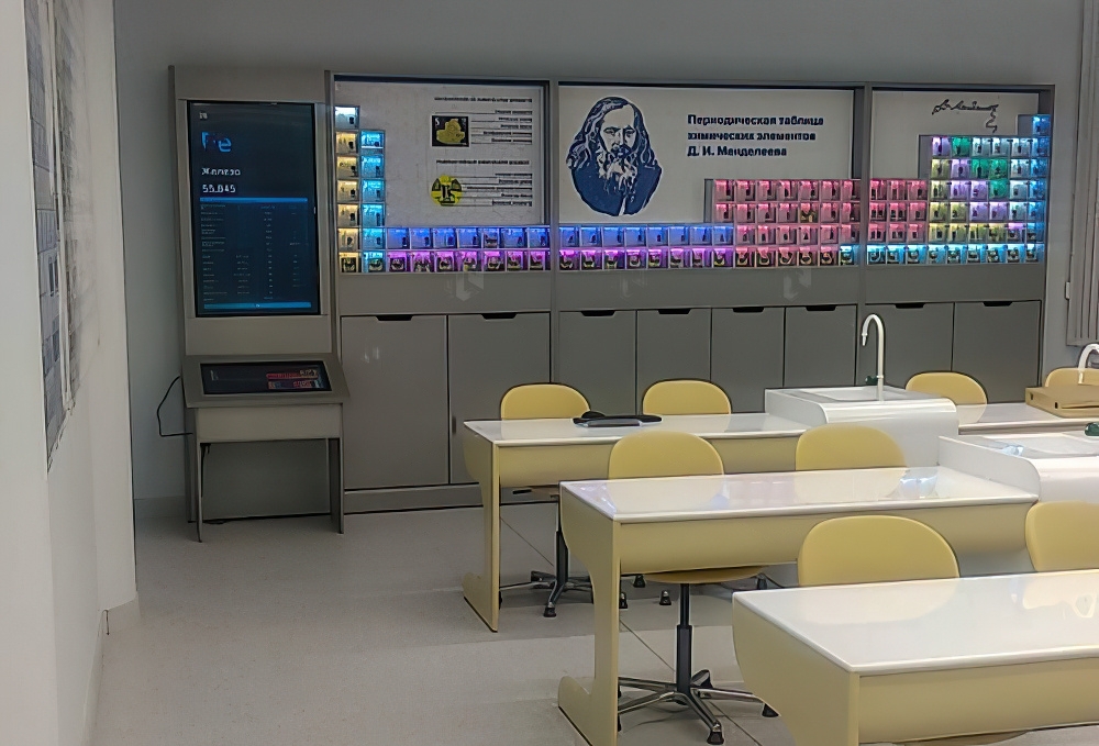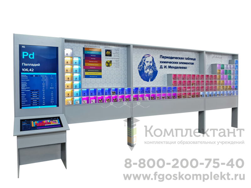 Интерактивный демонстрационный стенд с натуральными образцами "Периодическая таблица химических элементов Д.И. Менделеева