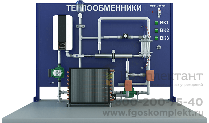 Лабораторная установка для испытания различных конструкций теплообменных аппаратов: пластинчатый, кожухотрубный и воздушный