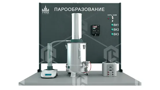Учебно-лабораторный комплекс предназначен для экспериментального определения удельной теплоты парообразования воды, отображения переходного процесса жидкость – пар.
