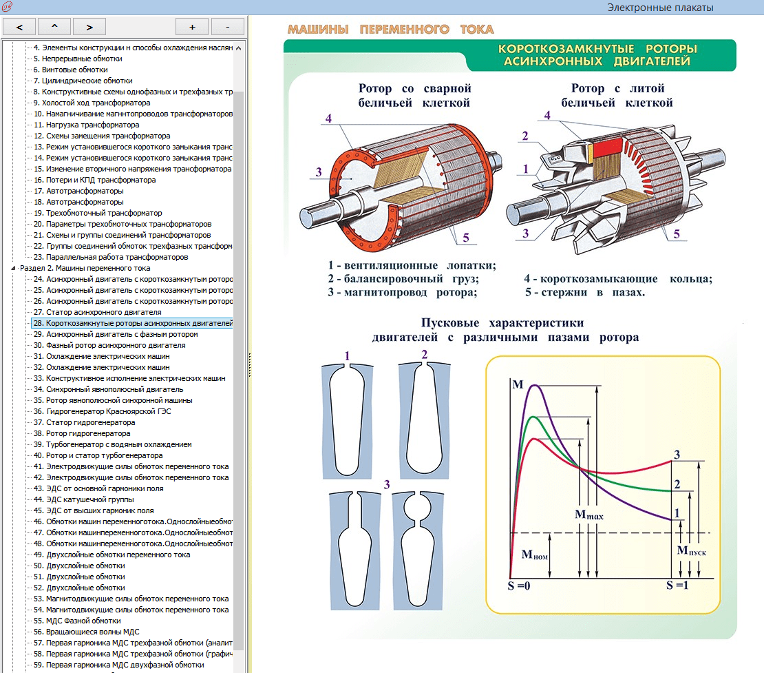 Электронные плакаты «Электрические машины» выполнены в виде электронной книги, в которой имеются графические элементы и текстовые описания по разделам: