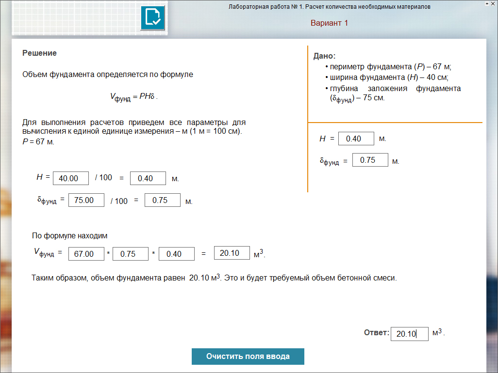 - Расчет количества необходимых материалов – 4 варианта выполнения