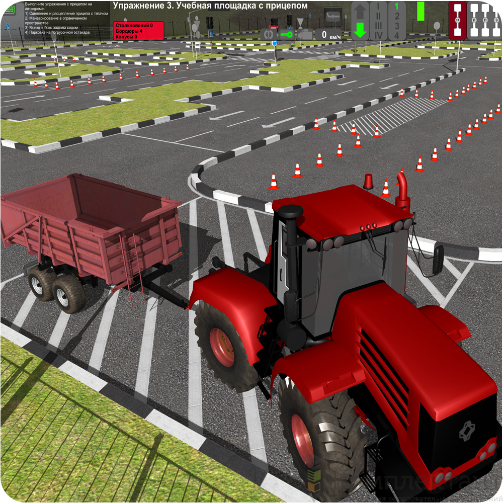 В комплект учебного тренажера входит компьютерная программа Simgenix Tractor Pro 2024, содержащая набор учебных упражнений по принципу "от простого к сложному" и предназначенная для тренировки навыков управления. Детально смоделированные виртуальные рабочие и учебные площадки, а так же точная модель трактора позволяют проводить эффективное обучение по профессии. Программа позволяет тренировать навыки управления двумя типами тракторов: МТЗ и К-744.