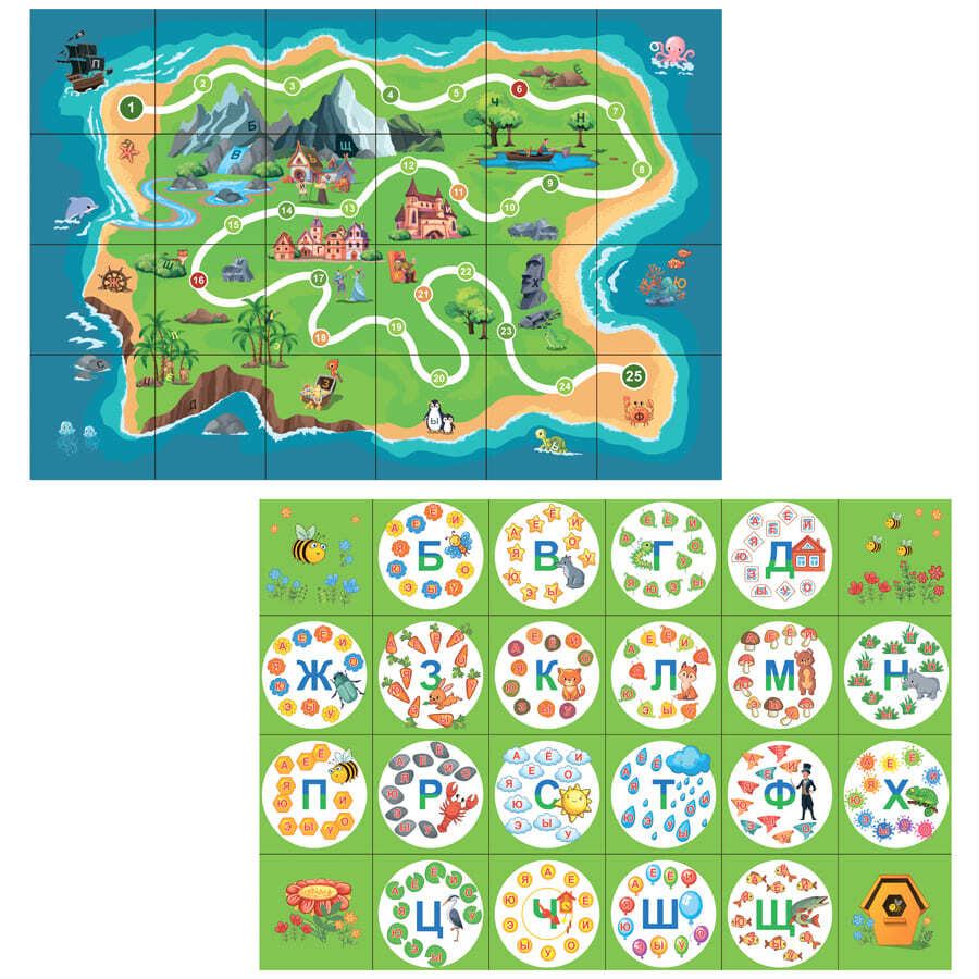 Тематическое поле-маршрутизатор «Остров/Слоги» разработано» рекомендовано для занятий по развитию речи, формированию словарного запаса, представлений о «звуке», «букве», «слоге», знакомству с понятием «словосочетание». Поле выполнено из плотного ламинированного картона, складывается на 4 части, очень удобно при хранении, занимает мало места. Поле-маршрутизатор «Остров/Слоги» двустороннее. Поле разделено на квадраты, расстояние между центрами которых составляет 150 мм (шаг мини-робота Bee-Bot). На каждой из сторон поле имеет износостойкое покрытие с нанесенными полиграфическим способом красочными рисунками: на поле «Слоги» в каждом квадрате, за исключением угловых, изображены объекты живой или неживой природы, а также крупные согласные буквы русского алфавита и мелкие гласные буквы, образующие слоги с согласными буквами, на другой стороне - на поле «Остров» изображены различные представители животного мира, морских обитателей, строений, водоемов и букв русского алфавита, а также маршруты с кружками для игры в «ходилки». Размер коврика: 90x60 см