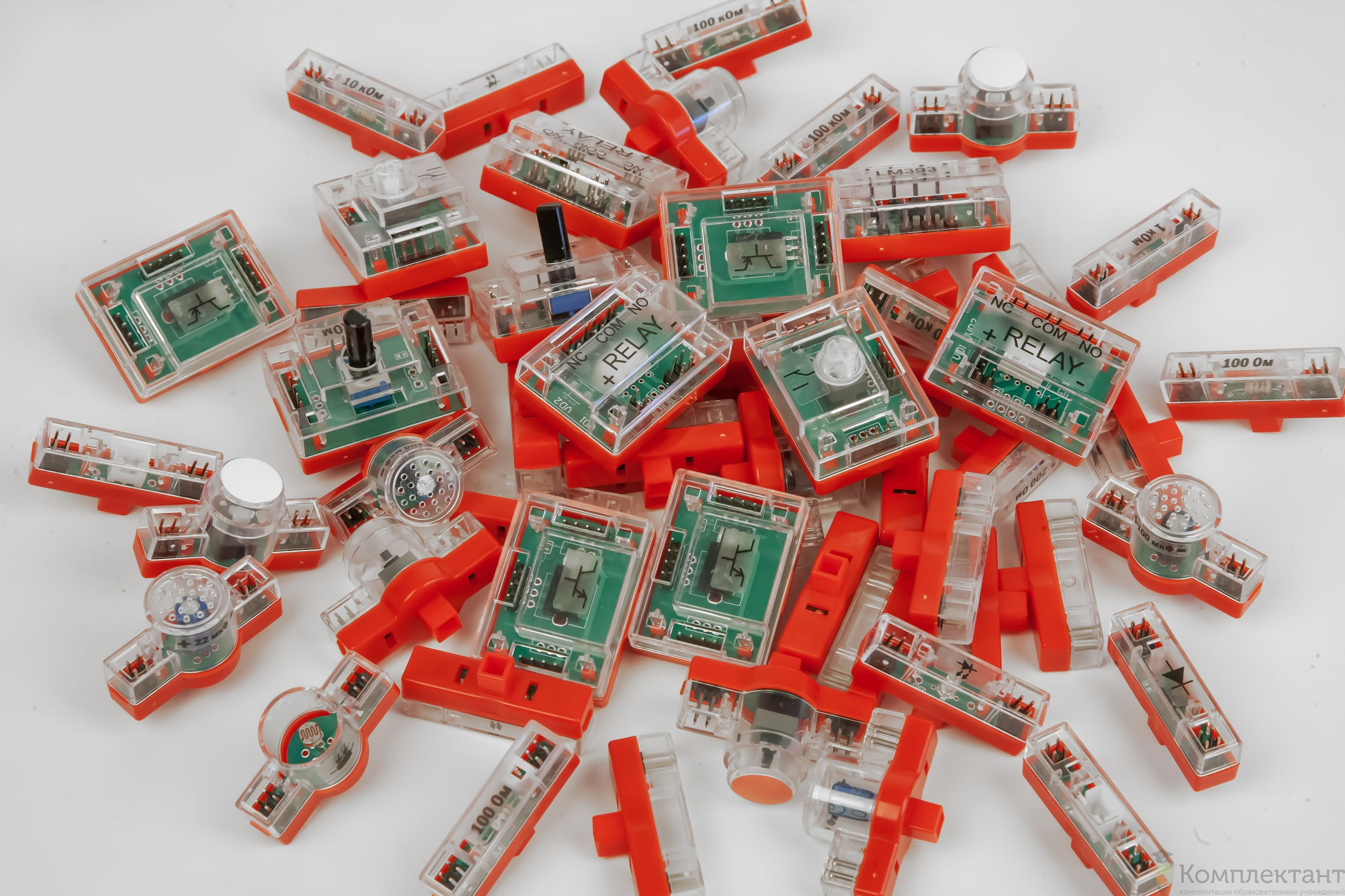 Набор представляет собой комплект электронных компонентов и соединительных деталей-кубиков. Используя эти элементы, пользователь имеет возможность собирать электрические схемы и изучать процессы, происходящие в них, а также конструировать отличные друг от друга модели, управляющиеся этими схемами, описанными в методическом пособии.