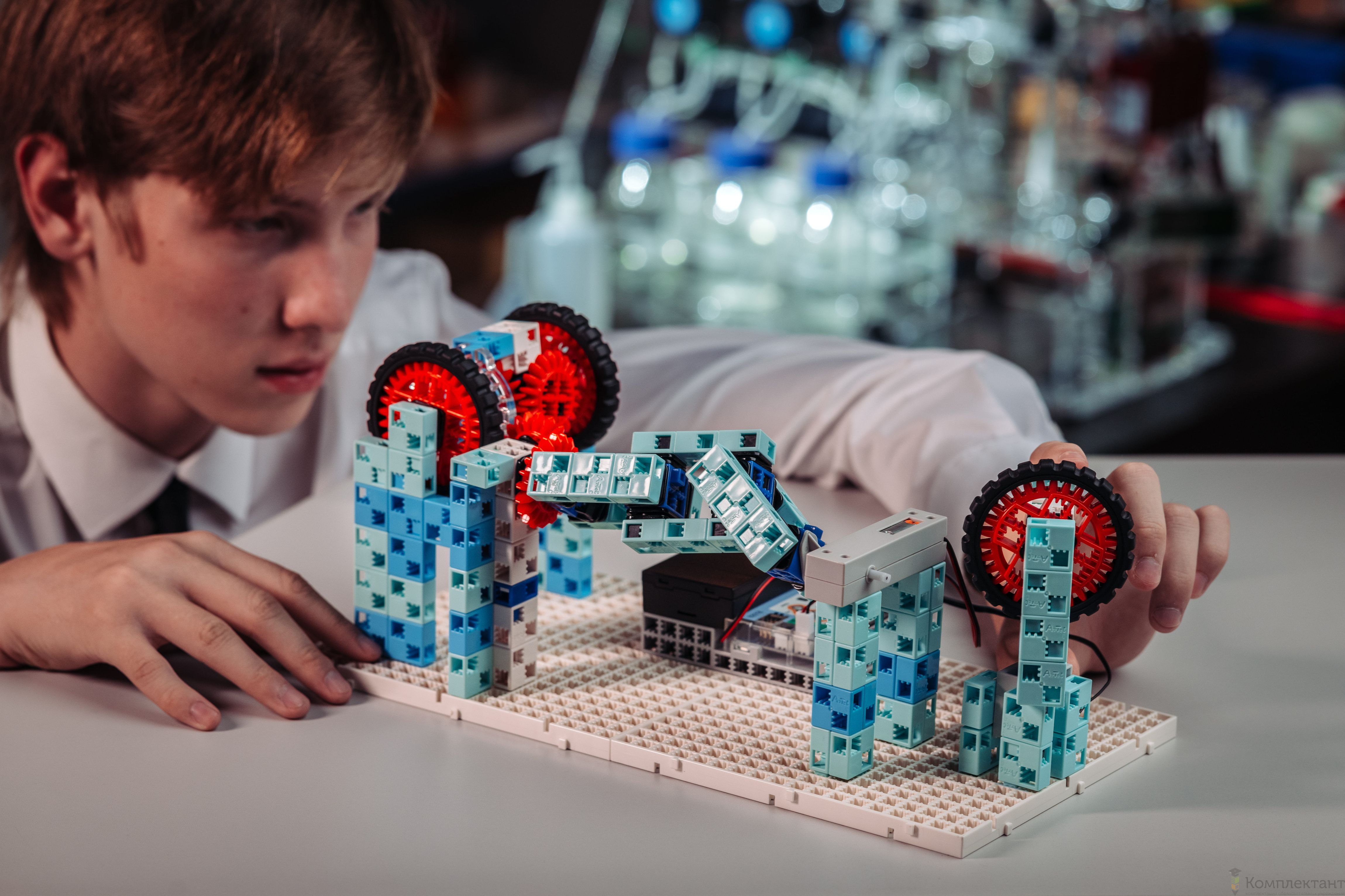 — Сборке действующих прототипов распространённых механизмов из универсальных, а не уникально специализированных деталей