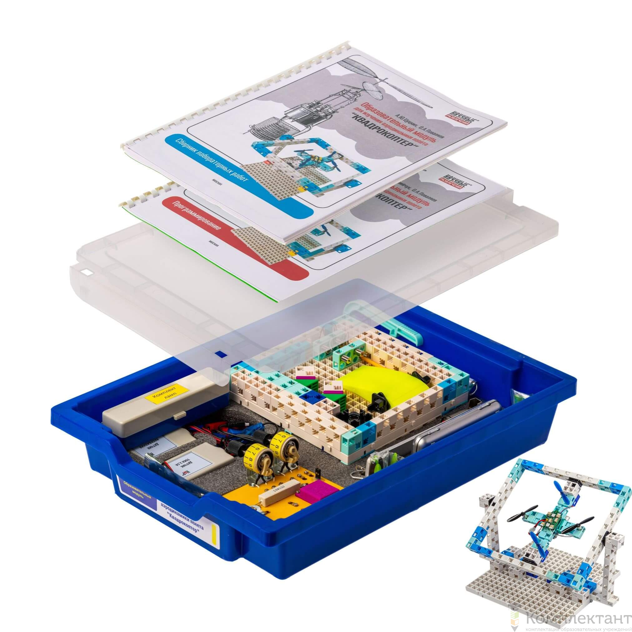Набор обеспечивает первоначальное знакомство пользователей с базовыми принципами построения и программным управлением летательных аппаратов, закладывая опорные знания для совершенствования навыков конструирования, программирования и управления летательными аппаратами любого вида.