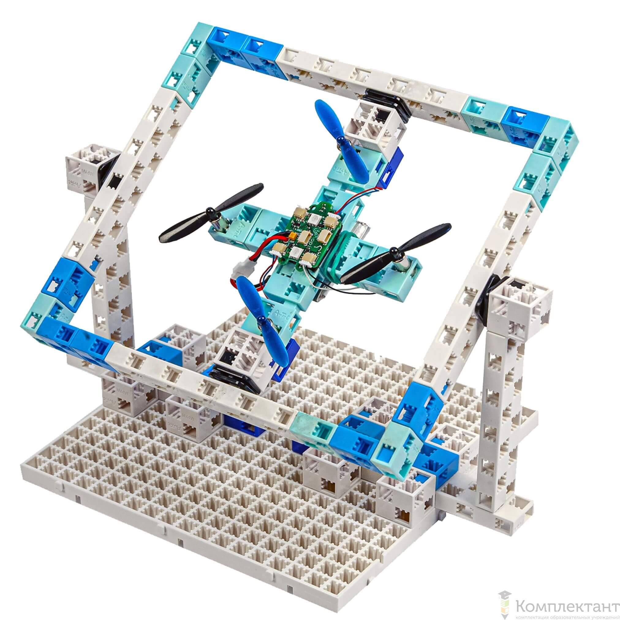 Набор позволяет собрать модель в виде квадрокоптера, а после экспериментировать с ним – программировать, делать балансировку, запускать и планировать траекторию его полетов.