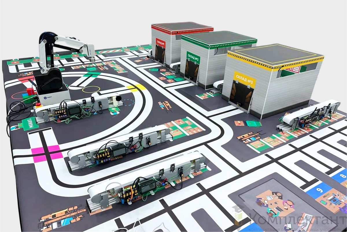 Полигон позволяет реализовать концепцию «Умное производство» для учебы или соревнований, объединяя несколько образовательных решений в единую систему.