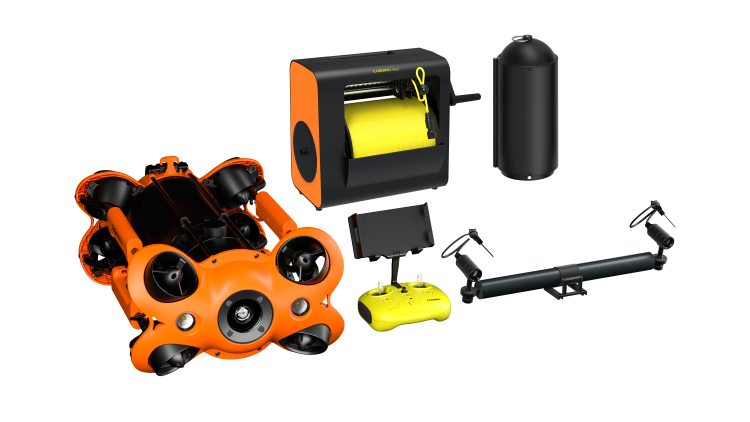Легкий и компактный подводный дрон промышленного класса для профессиональных и корпоративных клиентов с увеличенной мощностью моторов и глубиной погружения до 150м.