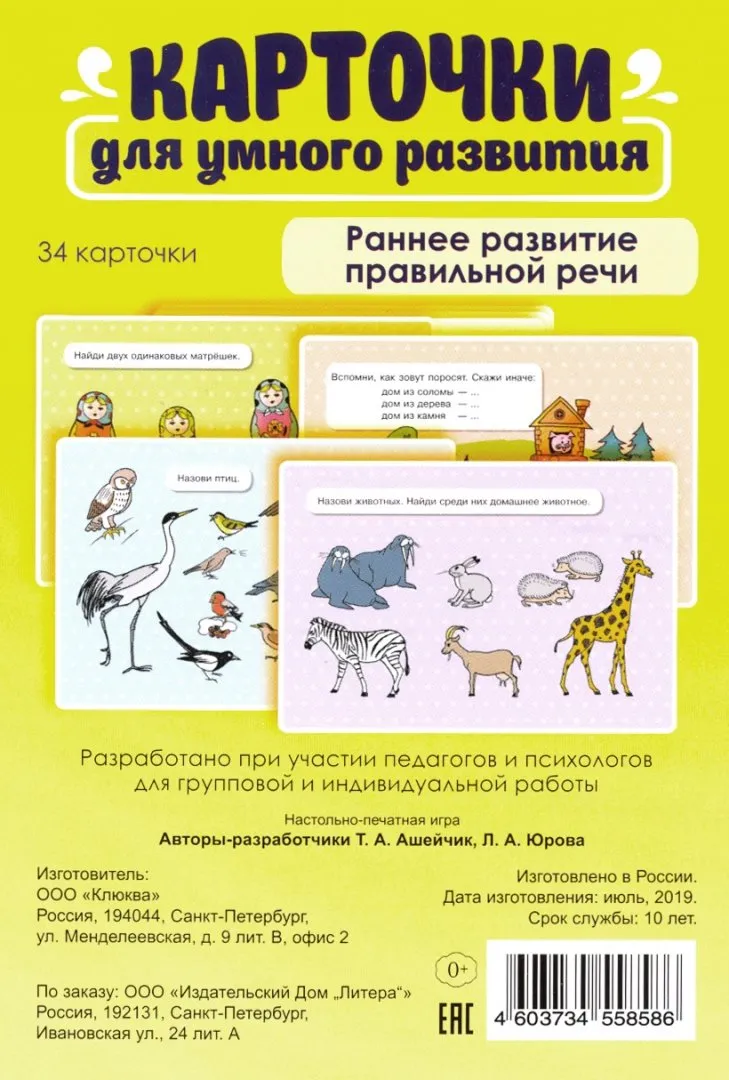 Карточки для умного развития. Раннее развитие правильной речи. 2+ (34 карточки)